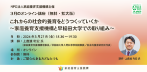 養子縁組や里親養育も含めたこどもの育つ家庭における、こども、養育者の理解と支援を十分なものとするべく、支援の質と量の向上、人材育成、関係機関の連携強化、社会の気づきと協働を目指しています。