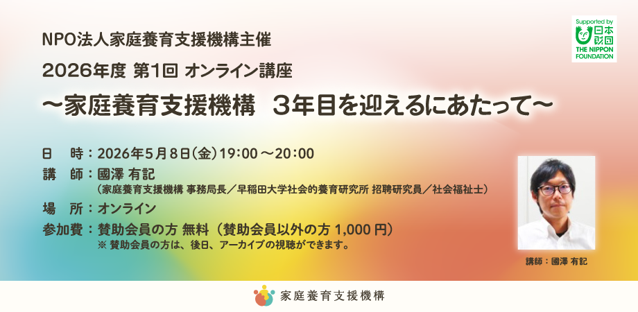 2026年度第1回目の講師は、この4月から家庭養育支援機構の事務局長に就任した國澤有記です。
